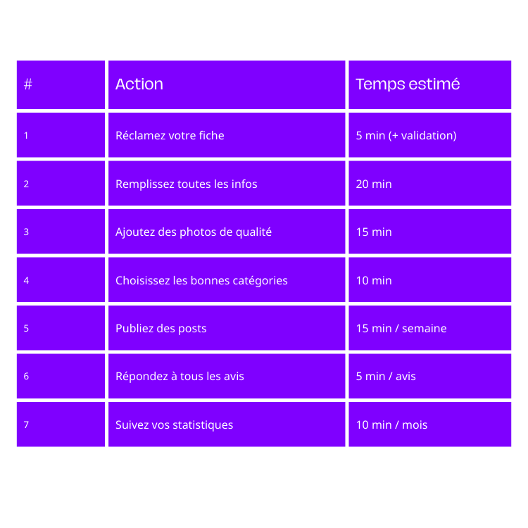 Voici les 7 étapes pour transformer votre fiche Google en machine à clients. On y va ?